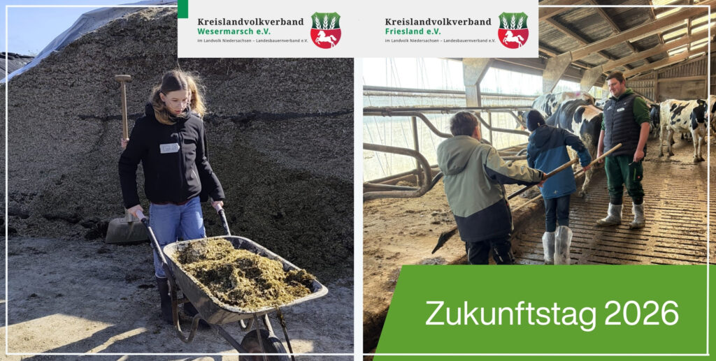 Mitmachen und Miterleben: Trecker fahren, Kälber füttern und Kühe melken Am 23. April 2026 findet der diesjährige Zukunftstag in Niedersachsen statt. Schülerinnen und Schüler der 5. bis 10. Klassen allgemeinbildender Schulen erhalten an diesem Tag die Möglichkeit, verschiedene Berufsfelder praxisnah kennenzulernen. Auch das Kreislandvolk Friesland beteiligt sich gemeinsam mit den Fachschülerinnen und Fachschülern der Berufsbildenden - Neujahrsempfang: Zuversicht trotz wirtschaftlicher und politischer Unsicherheiten
